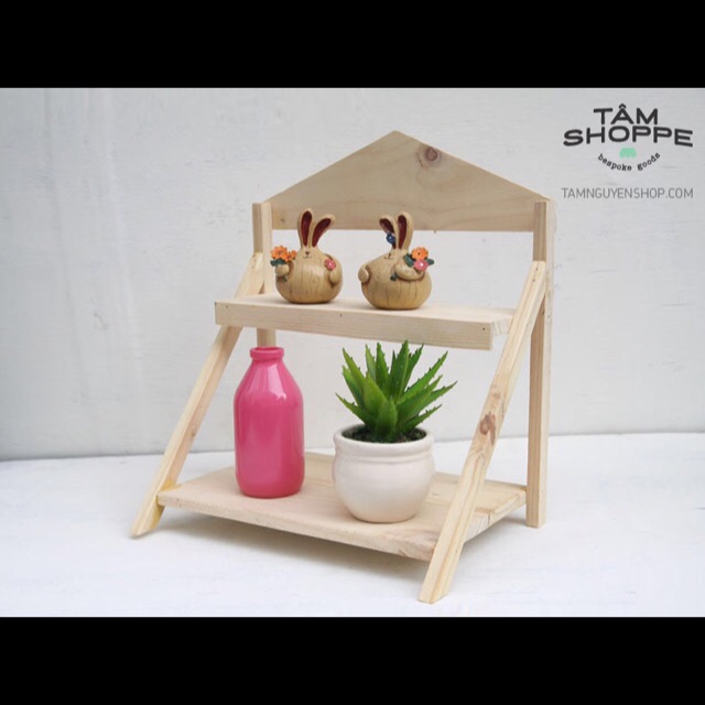 Giới thiệu [HÀNG CHUẨN] Kệ gỗ mini 2 tầng lắp ráp