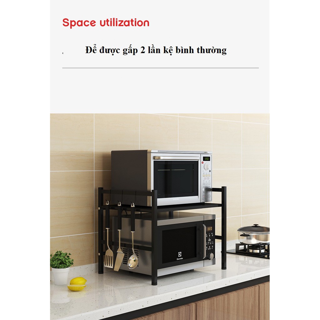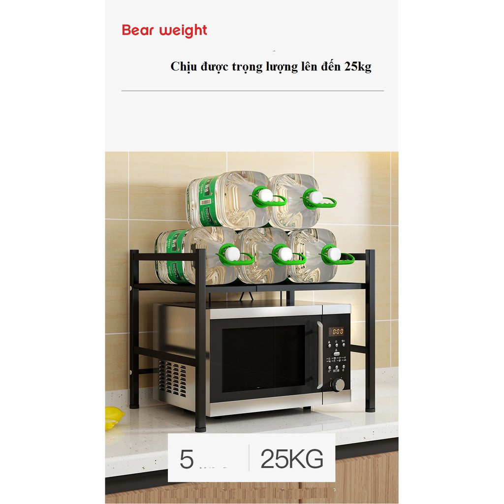 -Kệ có 2 tầng ( tầng dưới để lò vi sóng còn tầng 2 phù hợp để các loại gia vị,hoặc bình nước thoải mái chắc chắn ).