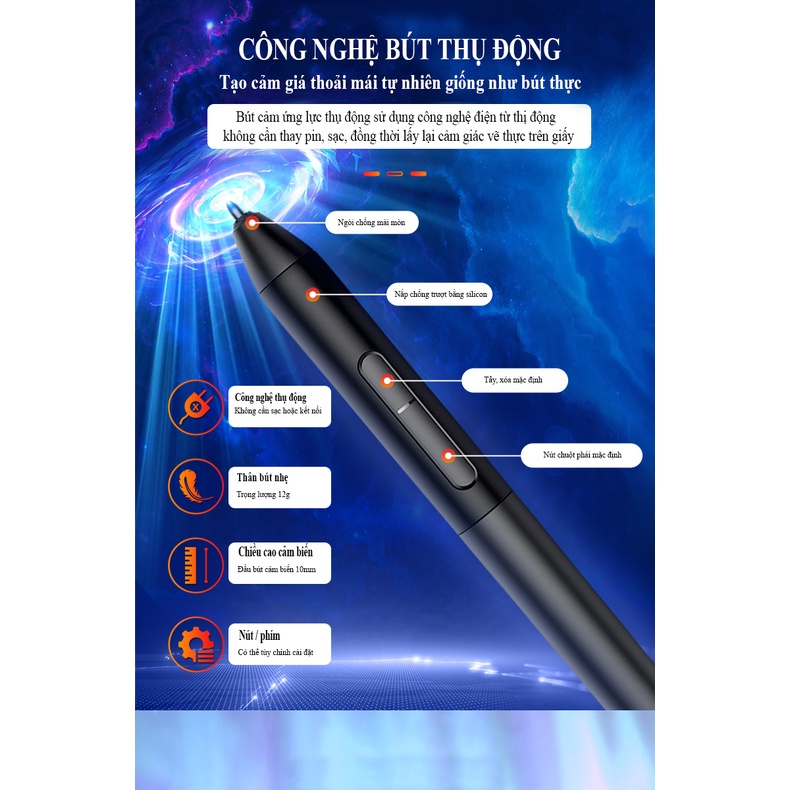 - Bộ nâng cao bao gồm 1 bút: 1 bảng vẽ, 1 bút, 1 cốc cắm bút, 1 dây HDMI, 1 dây USB, 48 ngòi dự phòng, 1 quạt tản nhiệt, 1 túi đựng, 1 khăn lau, 1 bao tay gaomon.