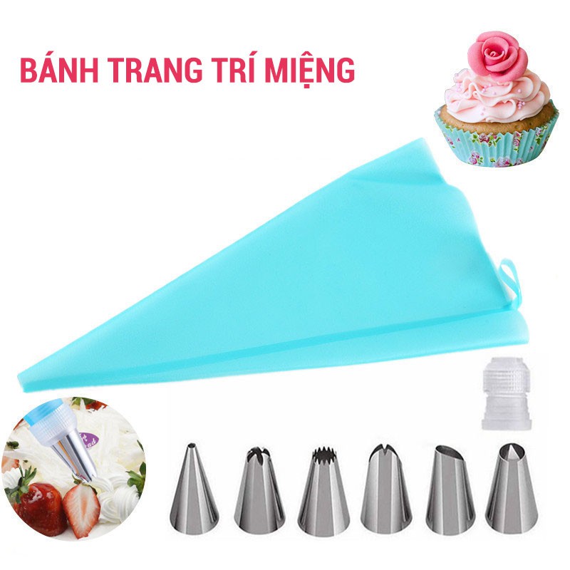 [HÀNG CÓ SẴN] Bộ 6 Đuôi Bắt Kem Kèm Túi TPU Dụng Cụ Làm Bánh Các Mẫu Đui Bắt Kem Thông Dụng