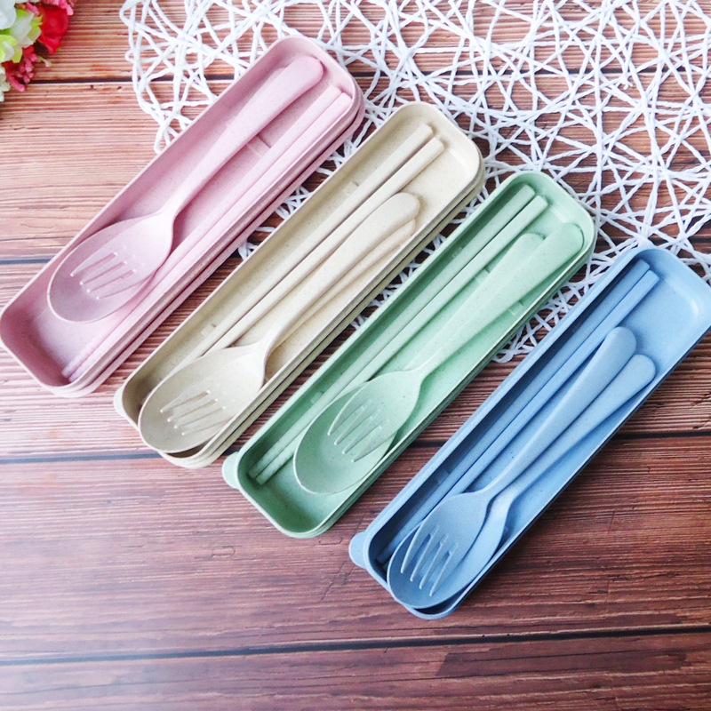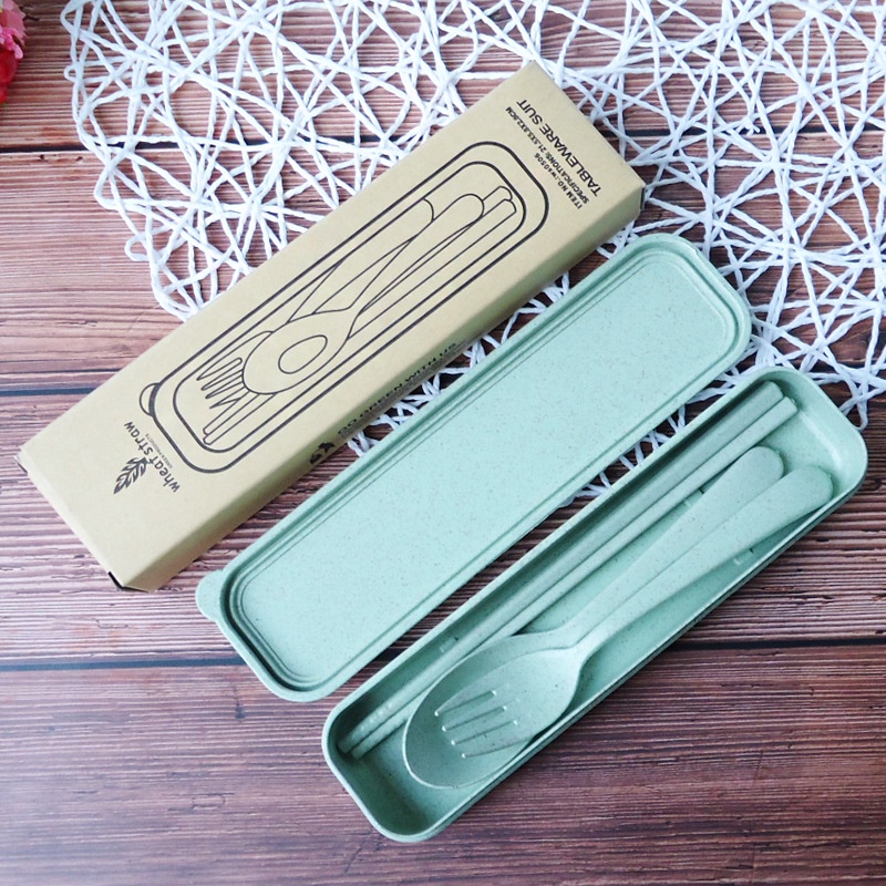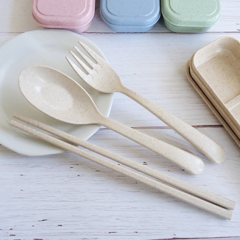 Nhà cửa & Đời sống > Bộ đồ bàn ăn > Bộ dao kéo || [HÀNG CÓ SẴN] Bộ hộp 3 món thìa, đũa, nĩa lúa mạch bộ đũa muỗng cho dân văn phòng, học sinh an toàn tiện dụngCòn hàng