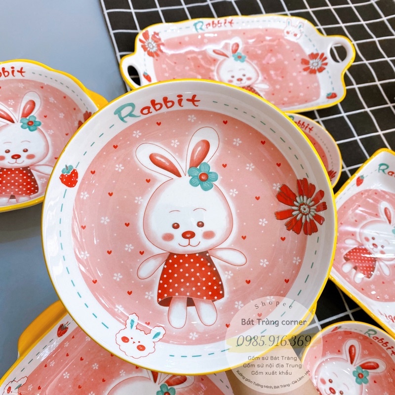 [Hàng có sẵn] Bộ thỏ hồng Rabbit siêu xinh, set bát đĩa sứ hình thú ngộ nghĩnh
