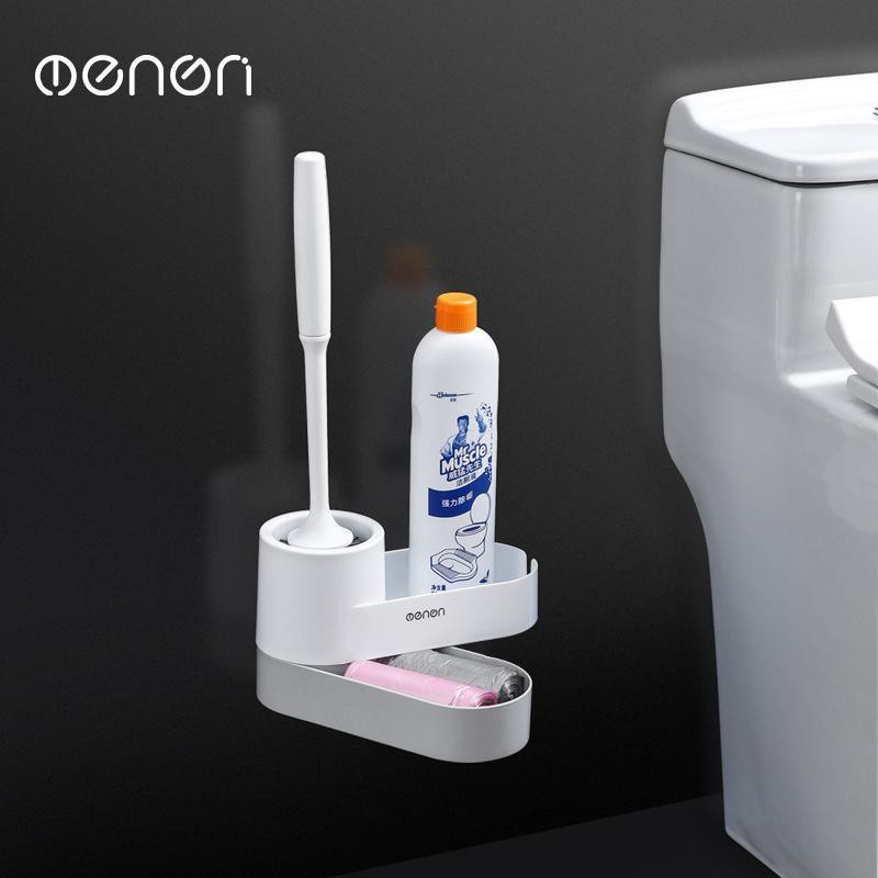 [HÀNG CÓ SẴN] Cây chổi cọ nhà vệ sinh cao cấp OENON có thêm ngăn chứa đồ lắp đặt dán tường - OEWC01