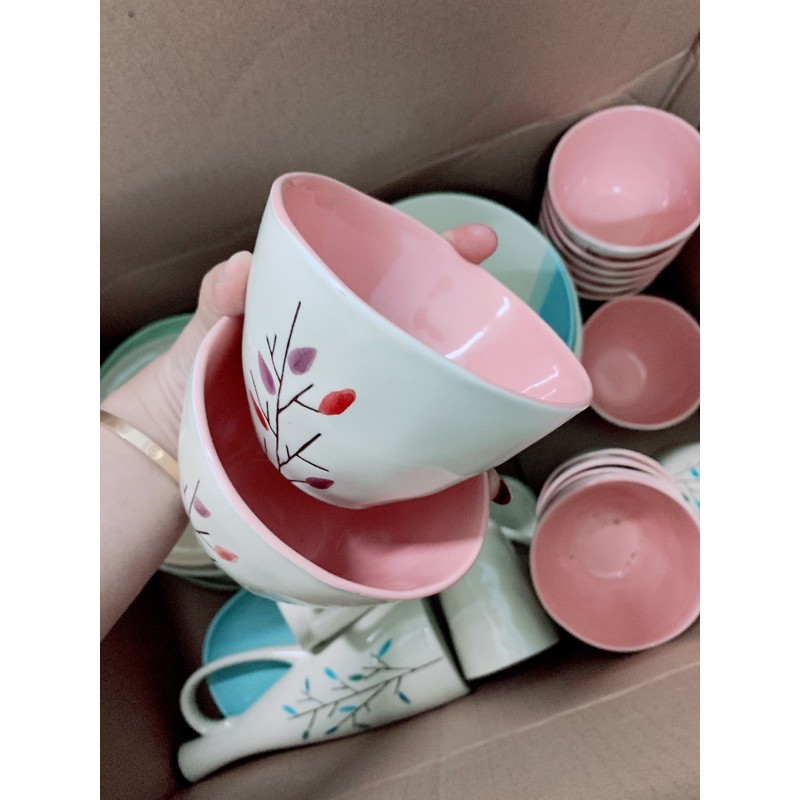 Nhà cửa & Đời sống > Bộ đồ bàn ăn > Tô || (HÀNG CÓ SẴN) CHÉN BÁT ĂN CƠM GỐM MÀU HỒNG DỄ THƯƠNG CUTE HOẠ TIẾT CÂY LÁ, HOA MAI TUYẾT HỒNG GIÁ RẺ TRANG TRÍ NHÀ BẾPCòn hàng