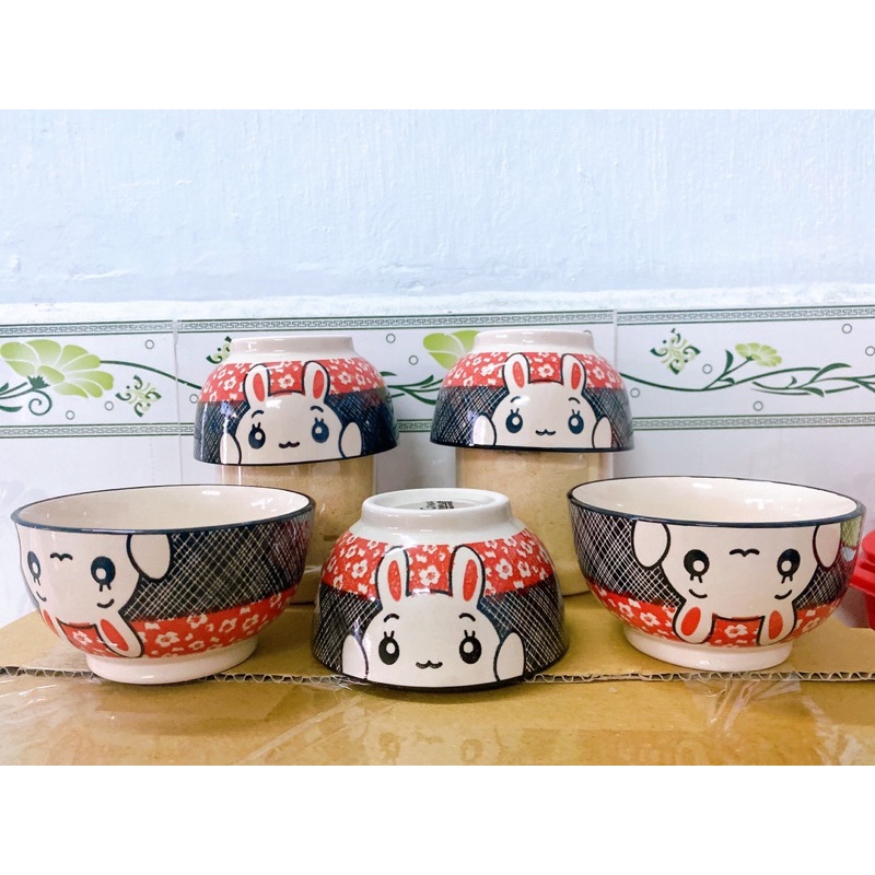 (HÀNG CÓ SẴN) CHÉN BÁT ĂN CƠM GỐM SỨ THỎ CUTE DỄ THƯƠNG, MÀU SẮC PASTEL HOẠ TIẾT HOA MAI CÂY LÁ GIÁ RẺ TRANG TRÍ BÀN ĂNHÀNG NHÀ EM LUÔN LUÔN CÓ SẴN NHE, khách không phải đợi order gì lâu hết, mà GIÁ LẠI CÒN RẺ BÈO RẺ BẤT NGỜ.