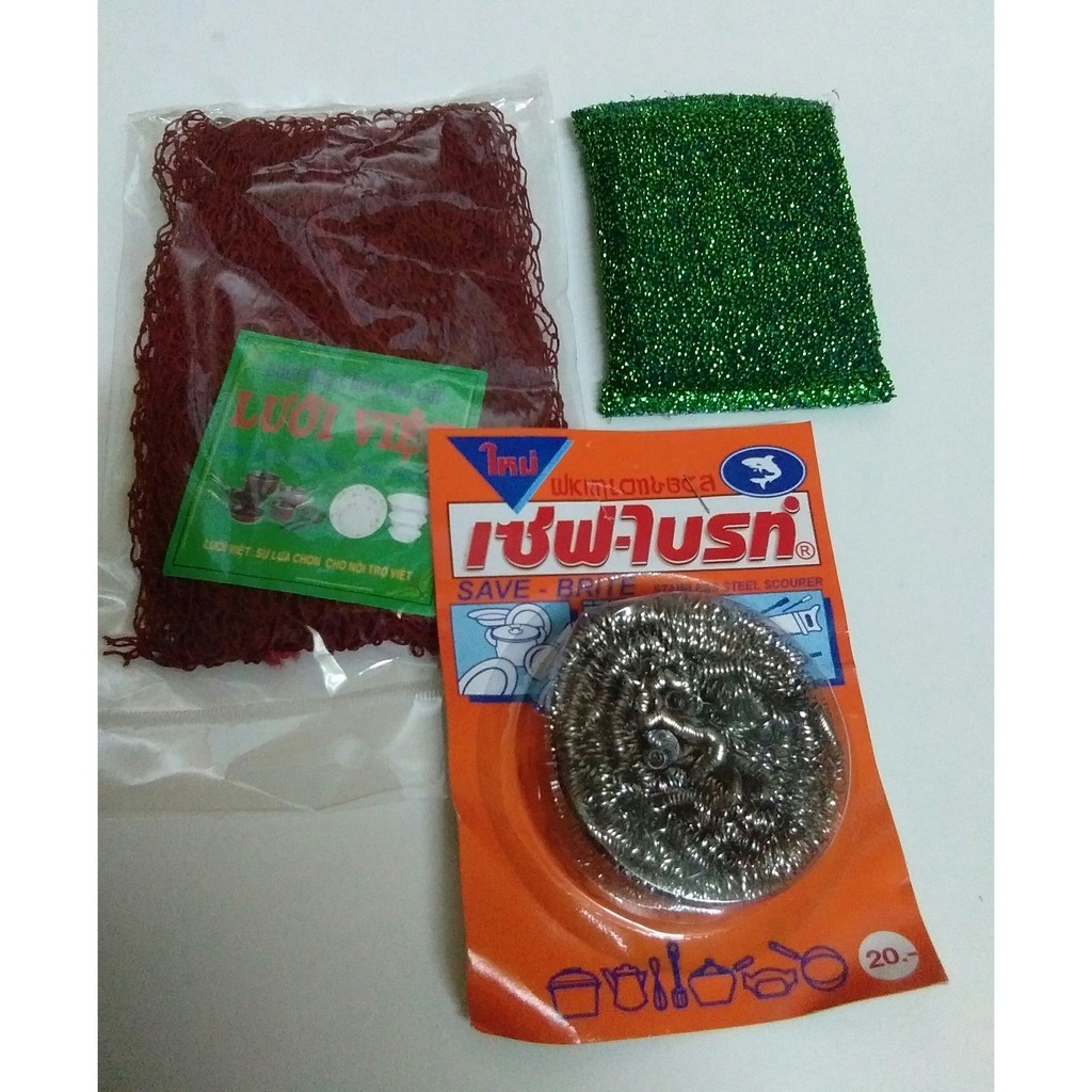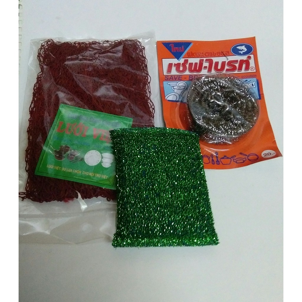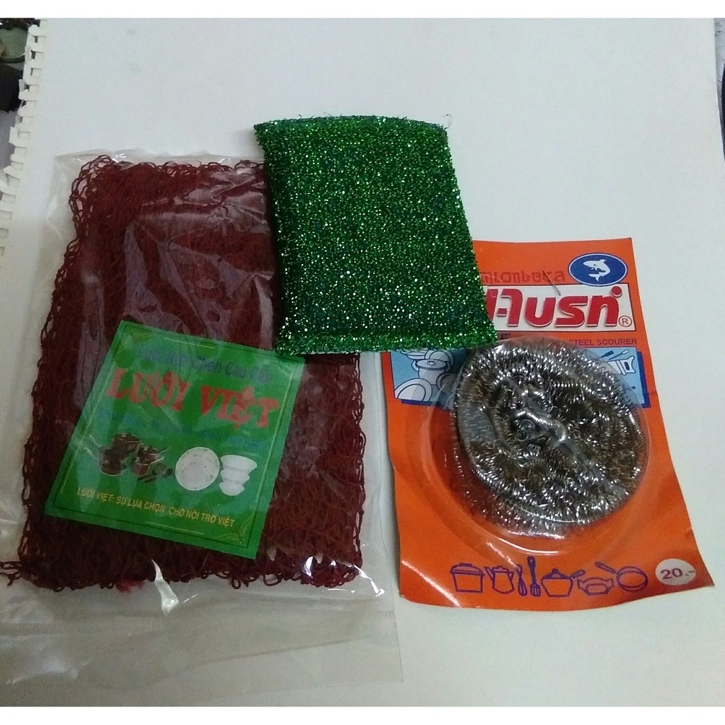 Nhà cửa & Đời sống > Dụng cụ chăm sóc nhà cửa > Miếng bọt biển, miếng chà vệ sinh || [HÀNG CÓ SẴN]Combo dụng cụ rửa chén 3 món (lưới rửa chén+chùi xoong+miếng rửa chén)Còn hàng