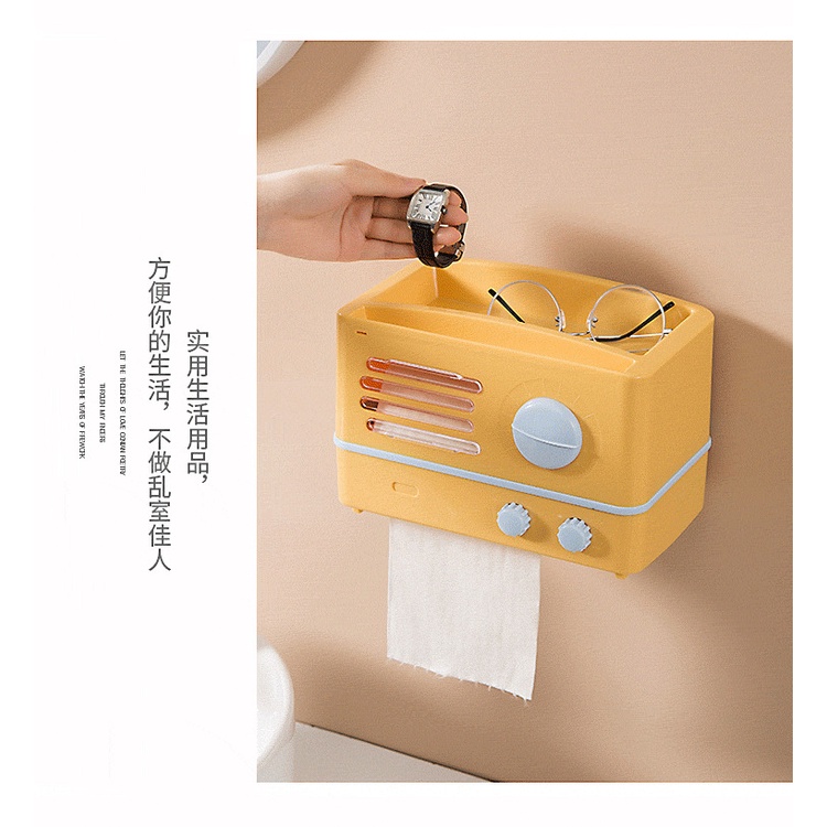 Hàng Có Sẵn ] Hộp Đựng Khăn Giấy Treo Tường Toilet Phong Cách Retro Hộp Khăn Giấy Hình Radio Phong Cách Vintage