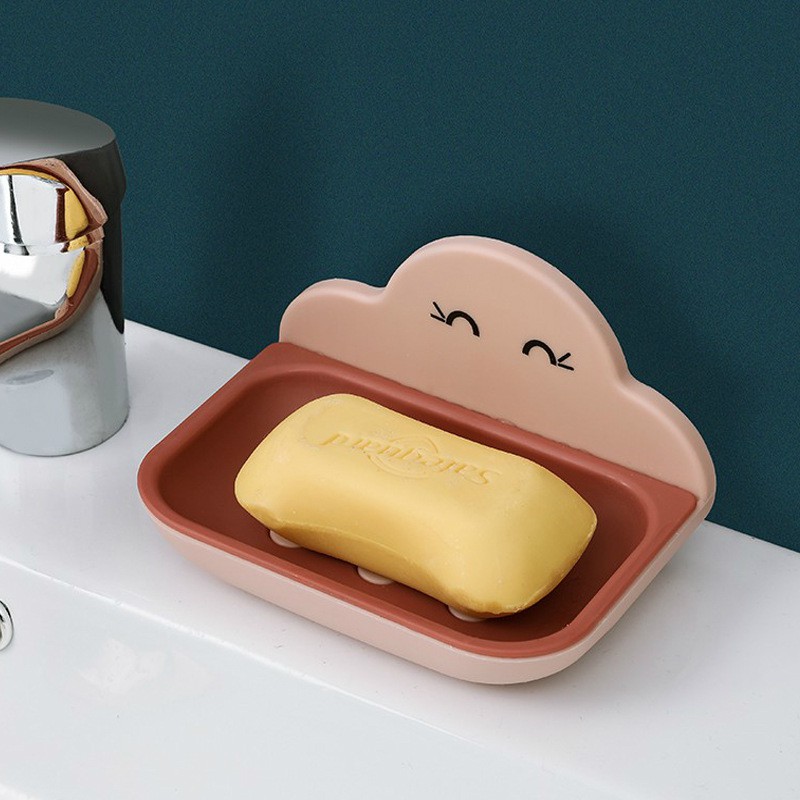 Giới thiệu [HÀNG CÓ SẴN] Kệ đựng xà phòng hình đám mây dễ thương, khay đựng xà phòng dán tường thiết kế 2 lớp tiện lợi