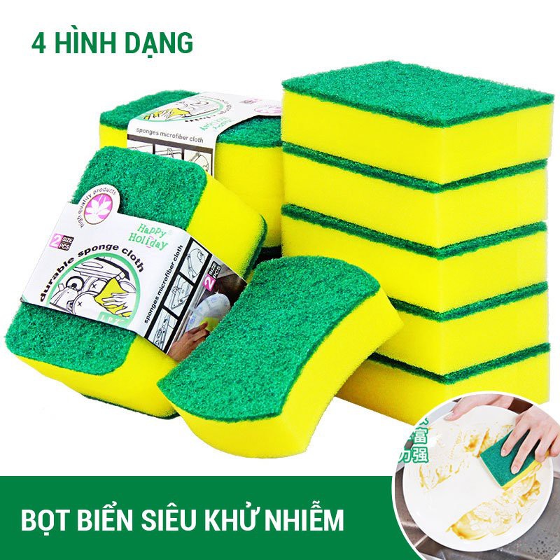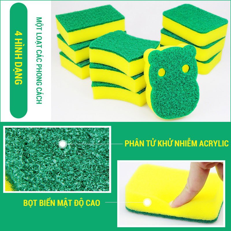 Giới thiệu [HÀNG CÓ SẴN] Miếng bọt biển rửa chén bát xanh vàng tiện dụng, miếng cọ rửa xoong nồi sạch bóng giá rẻ
