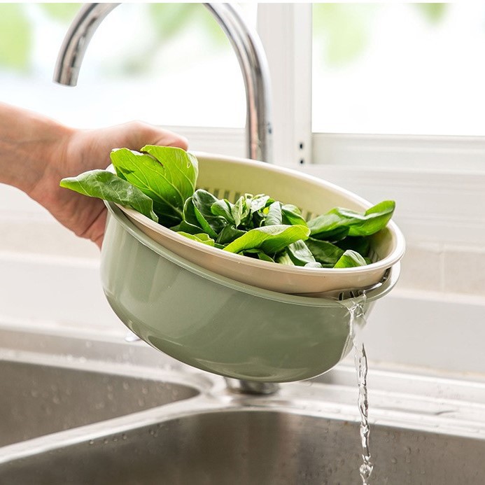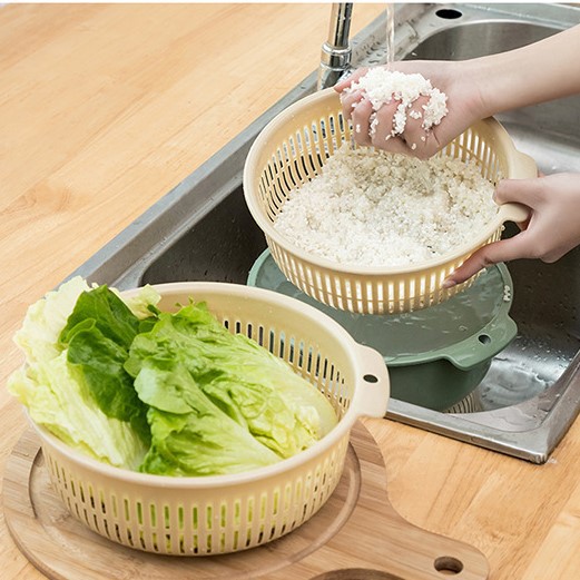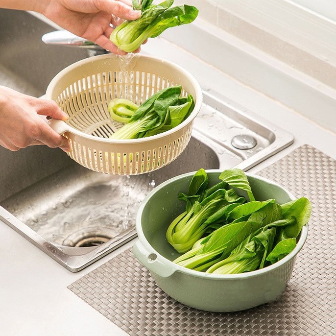 Nhà cửa & Đời sống > Dụng cụ nhà bếp > Dụng cụ lọc || [HÀNG CÓ SẴN] Rổ nhựa PP tròn thoát nước rửa trái cây, rau củ sáng tạo 2 lớp chắc chắnCòn hàng