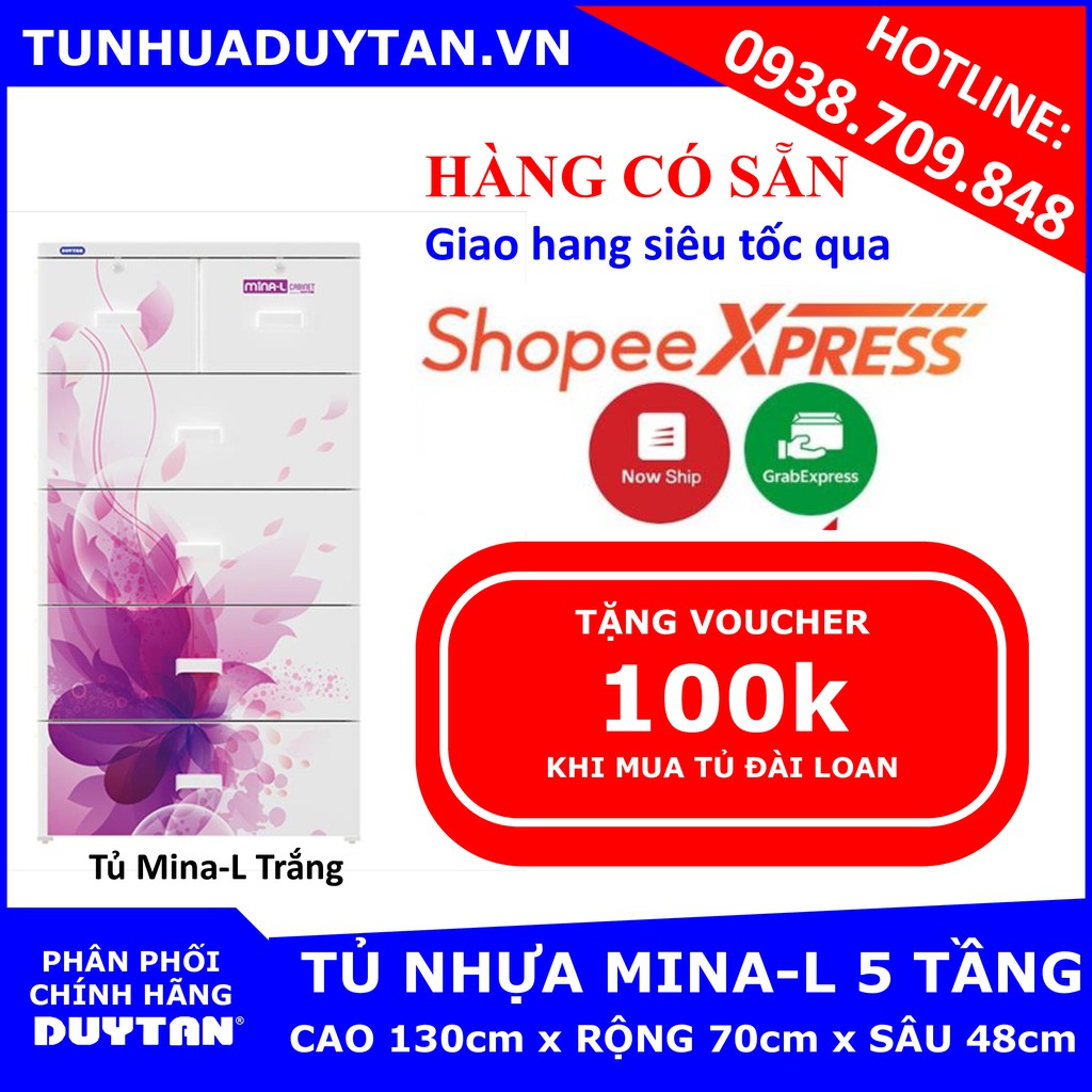 [Hàng Có Sẵn] Tủ nhựa Duy Tân MINA L 5 tầng ( Trắng) - Tặng kèm voucher 100k khi mua tủ nhựa đài loan