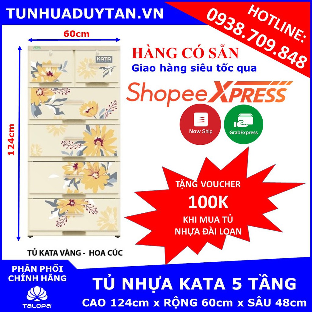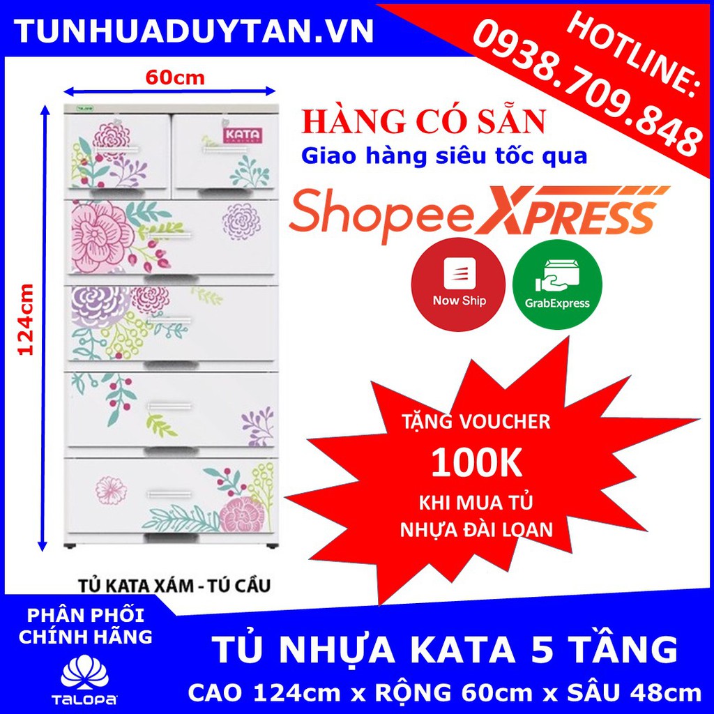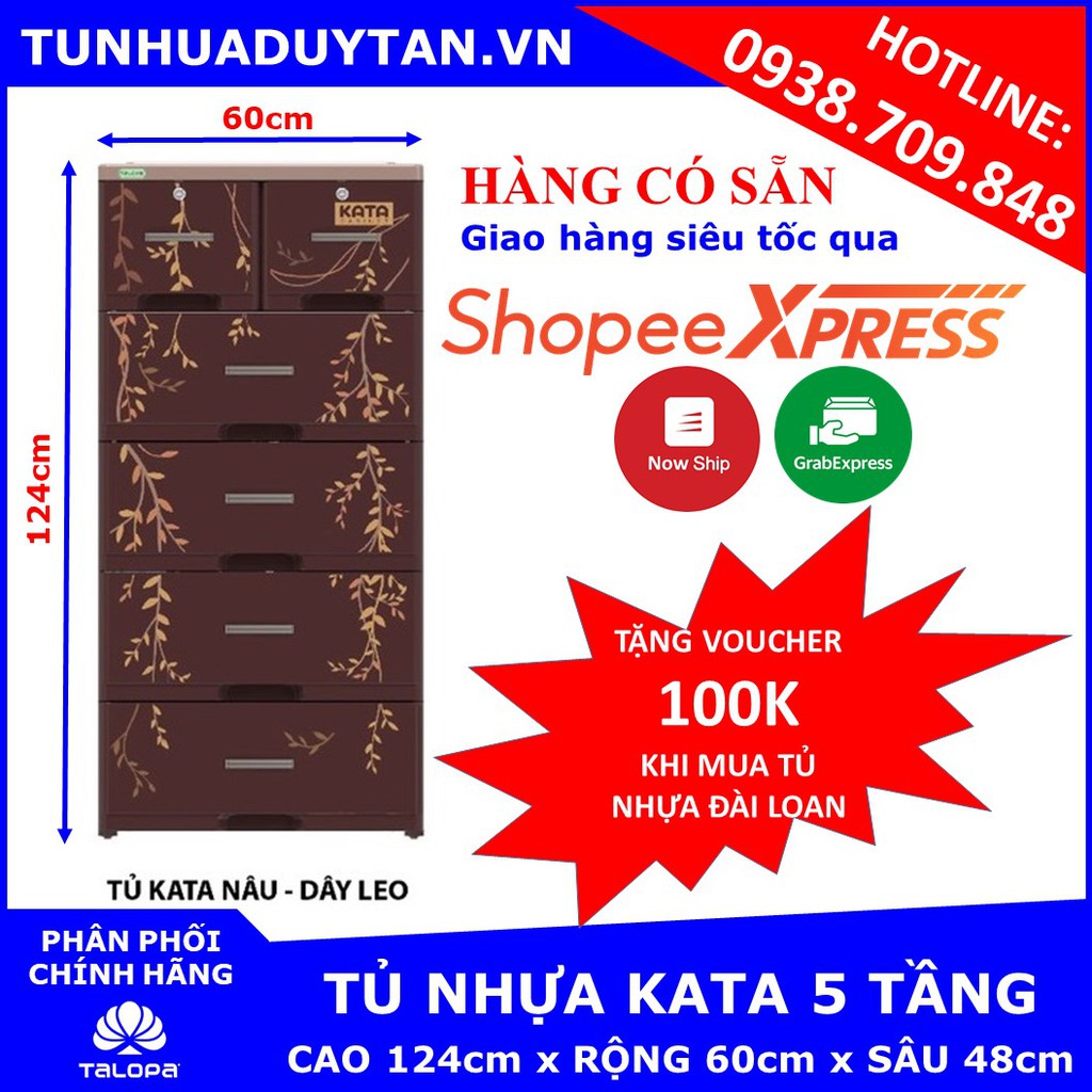 [HÀNG CÓ SẴN] Tủ nhựa KATA 5 tầng ( 60cm x 48cm x 124cm ) Tặng kèm voucher 100k khi mua tủ nhựa đài loan