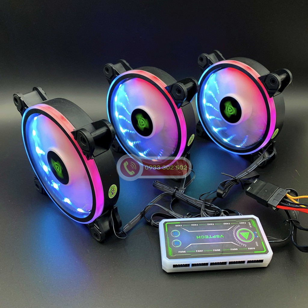 Bộ 3 Fan Case V206, V206B - LED RGB, V207, V304C, V306C LED ARGB VSP Kèm Hub và Remote, Chính Hãng, Bảo hành 2 Tháng