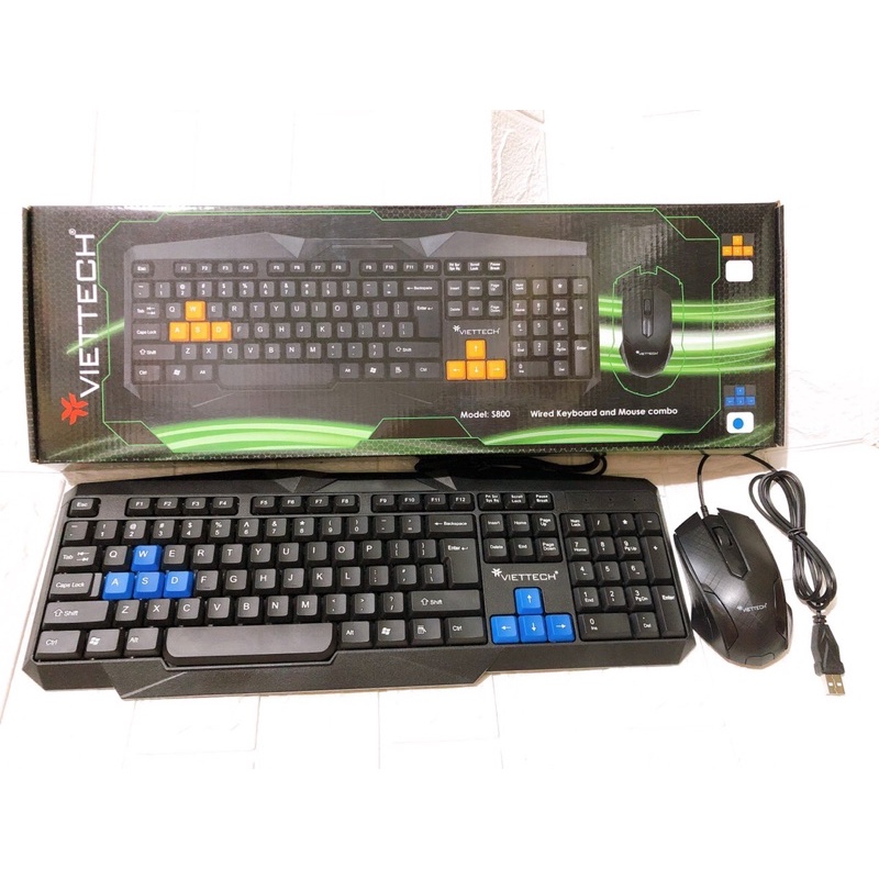 Máy tính & Laptop > Chuột & Bàn Phím > Bàn Phím Máy Tính || ( Chính hãng) Combo bộ phím chuột Viettech S800 kết nối usb tặng kèm bàn di chuột raze 25*30 3ly.Còn hàng