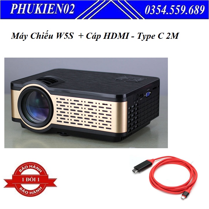 Thiết Bị Điện Gia Dụng > Máy chiếu & Phụ kiện > Máy chiếu & Màn hình chiếu || [ Chính hãng ] Combo Máy Chiếu Hỗ Trợ Tiếng Việt Thế Hệ Mới W5S Kết Nối Bluetooth, Wifi Mini + Cáp HDMI cho Type C 2MCòn hàng