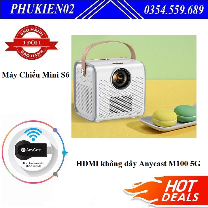 [ Chính hãng ] Combo Máy Chiếu Mini S6 Chạy Hệ Điều Hành Android + Thiết bị TV Streaming HDMI Anycast M100 5G