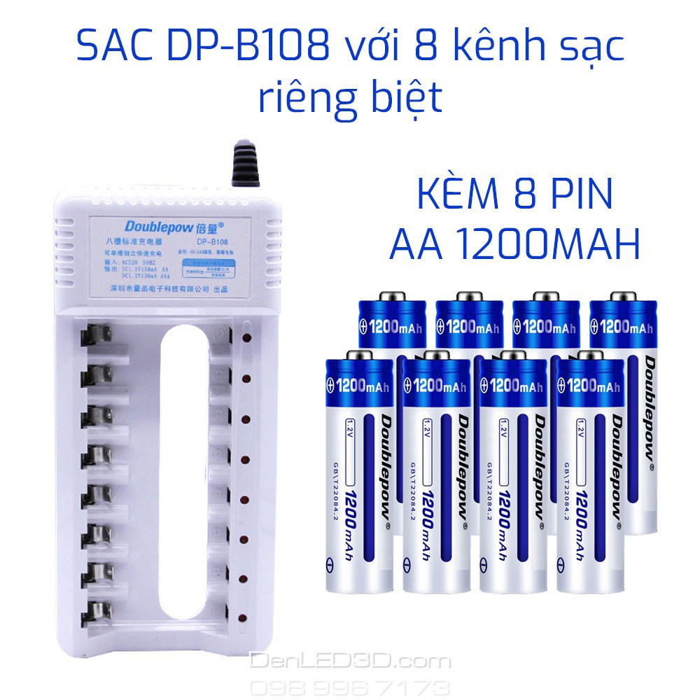 [Chính Hãng] Combo Sạc DP-B108 Kèm 8 Viên Pin Doublepow AA/AAA