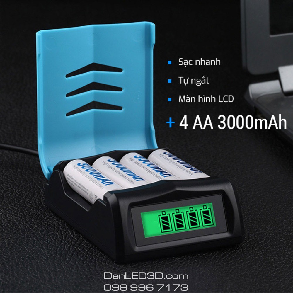 Cameras & Flycam > Phụ kiện máy ảnh > Bộ sạc pin || [Chính Hãng] Combo Sạc Nhanh BESTON C9001 Kèm 4 Pin AA 3000mAh - Sạc Tự Ngắt Có Màn Hình LCD - BH 1 Đổi 1Còn hàng