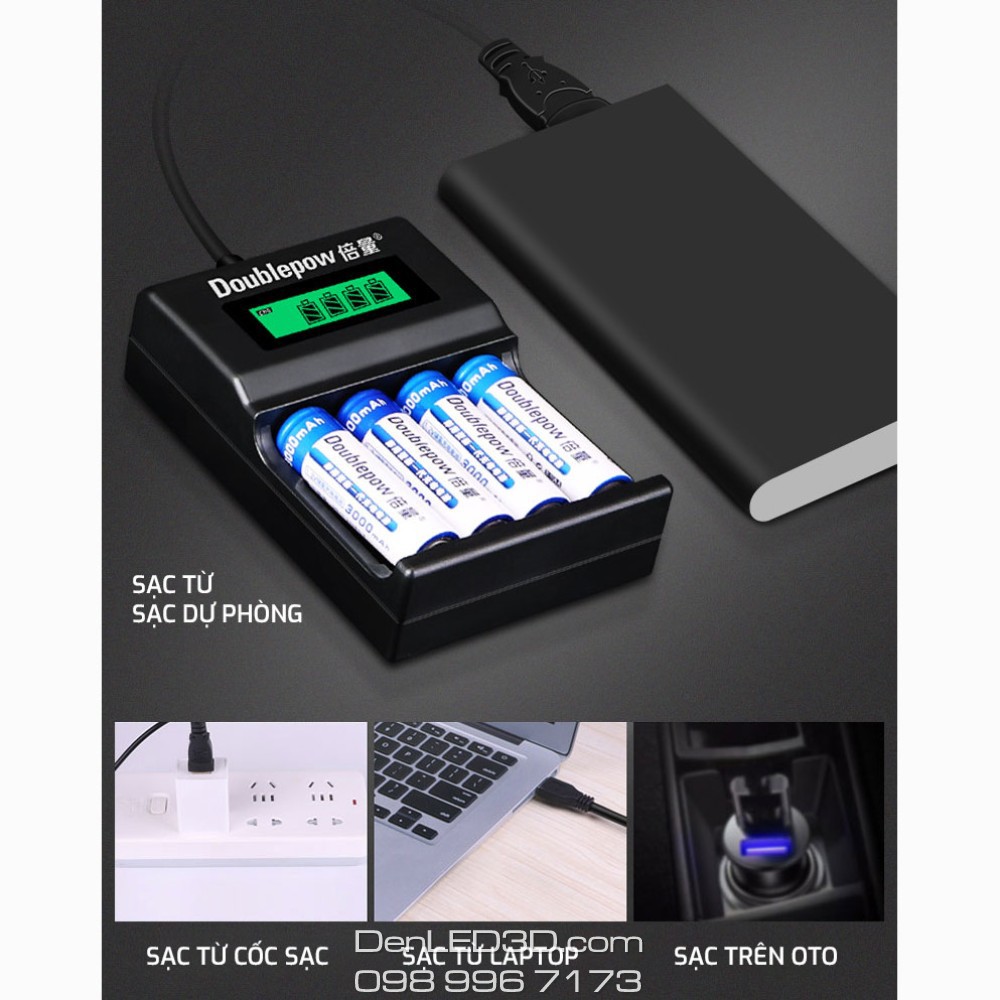 [Chính Hãng] Combo Sạc Tự Ngắt UK93B Kèm 4 Pin Doublepow 3200Mah Cho Mic Karaoke, Camera