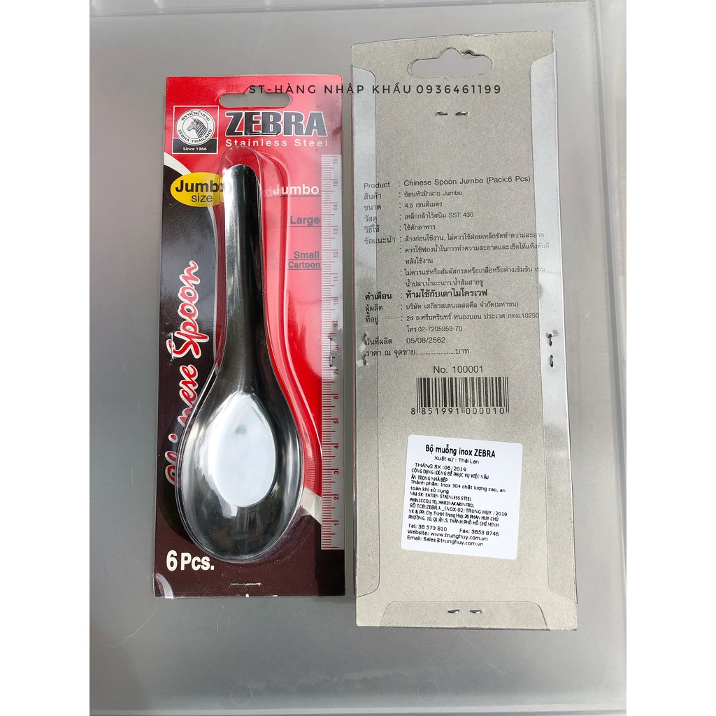 <hàng công ty>Vỉ 6 cái thìa/ muỗng inox ZEBRA Thái Lan