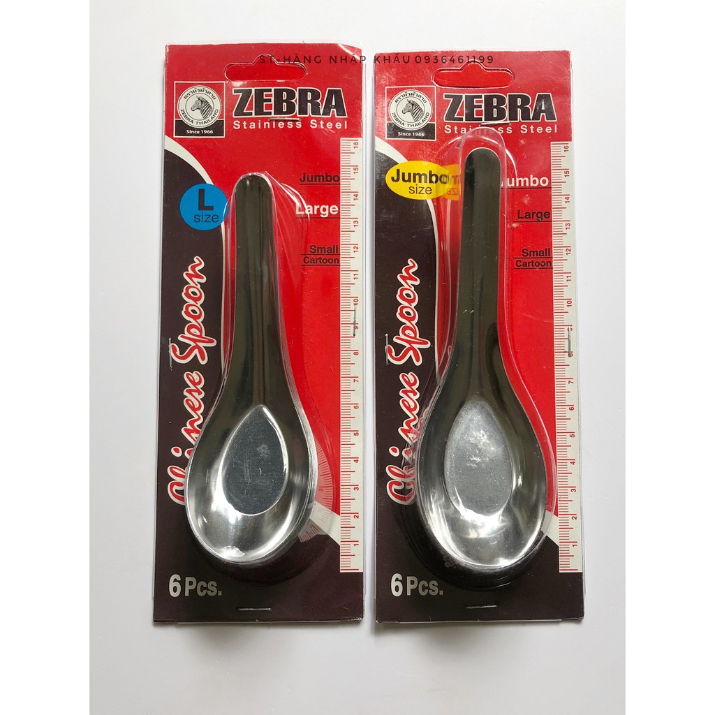 <hàng công ty>Vỉ 6 thìa/ muỗng inox ZEBRA size L & Zumbo Thái Lan