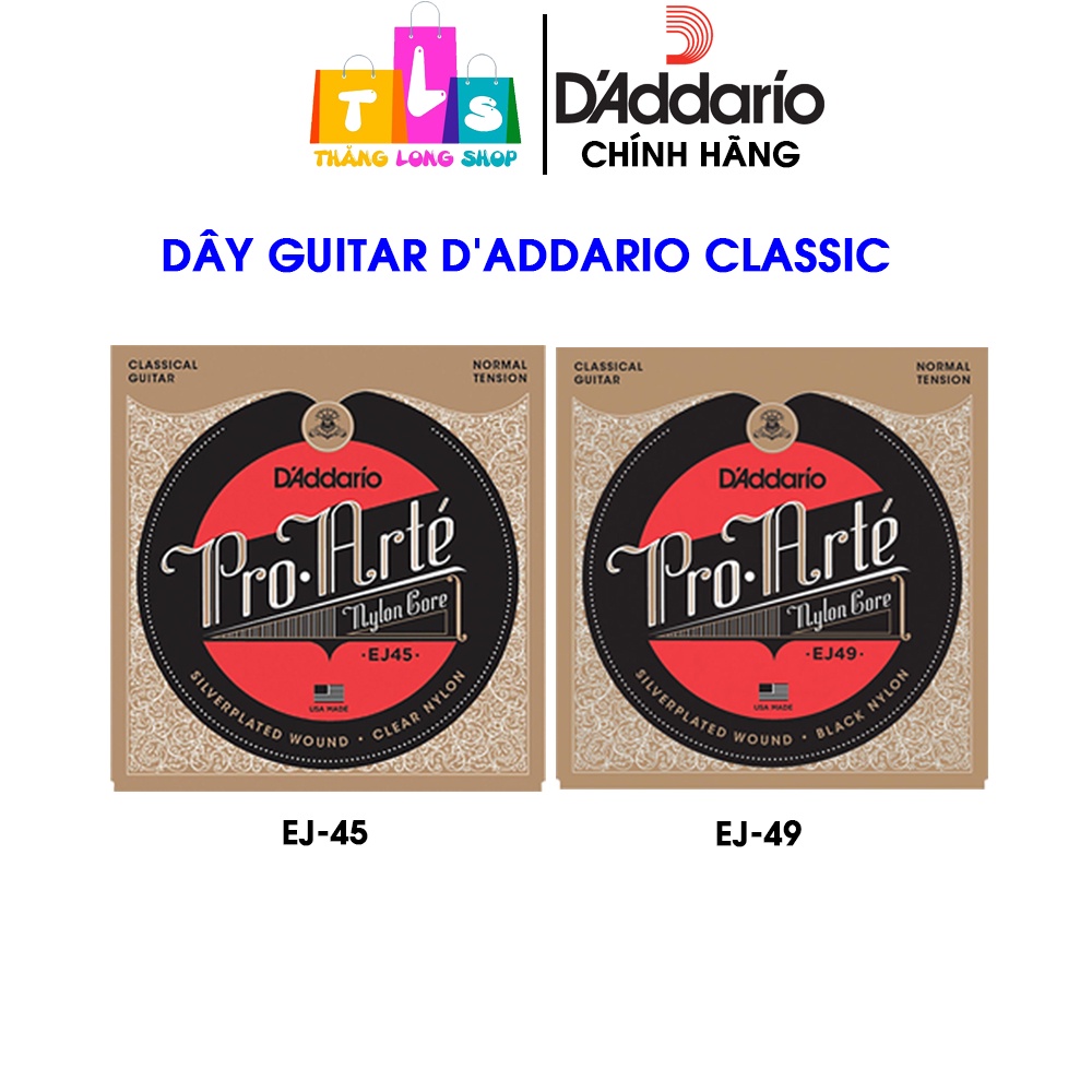 Dây Đàn Guitar Classic D'Addario EJ49 là thuộc dây guitar cổ điển series Pro-Arte của hãng D'Addario (Mỹ). Các dây treble thuộc series Pro-Arte đều được làm bằng nylon, đường kính và độ căng được đo bằng máy laser, các dây bass được bọc đồng mạ bạc quanh lõi làm bằng nylon đa sợi nhằm đảm bảo độ chuẩn xác của âm thanh phát ra.