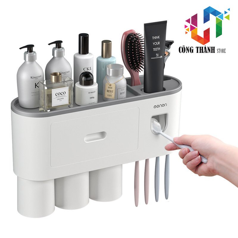 Nhà cửa & Đời sống > Đồ dùng phòng tắm > Kệ đựng bàn chải, kệ nhả kem đánh răng || [HÀNG ĐẶT TRƯỚC] Bộ dụng cụ nhả kem đánh răng tự động 2,3,4 cốc tích hợp giá treo bàn chải đa năng ENON- chất liệu ABSCòn hàng