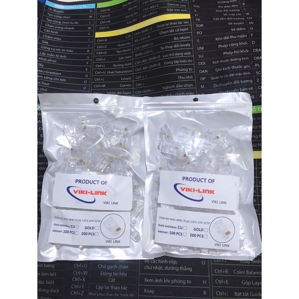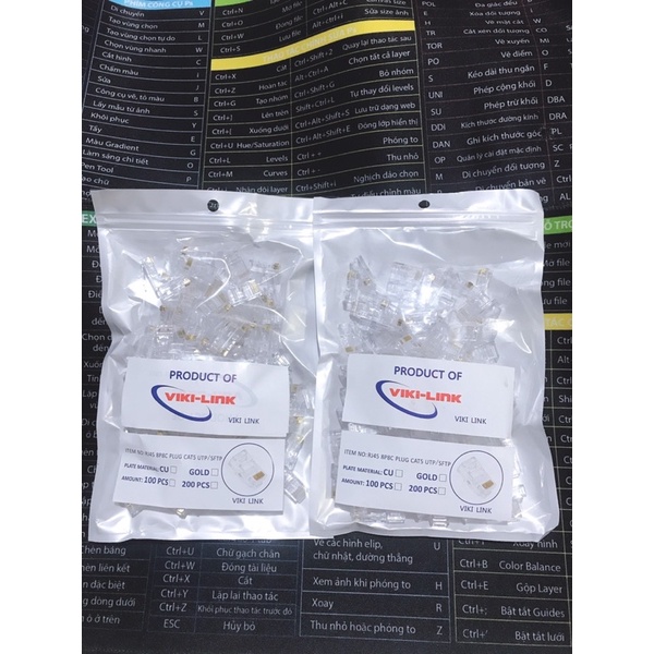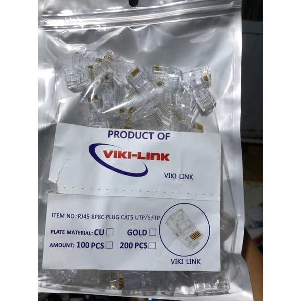 (Chính hãng). Đầu bấm mạng Viki túi 100 hạt, công nghệ Japan. Lá đồng dầy, chân đồng ko bị ô xi hóa, sp chất lượng cao.