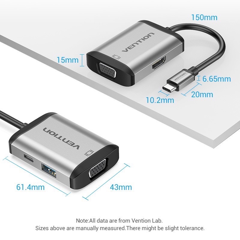 Máy tính & Laptop > Phụ Kiện Máy Tính > Bộ chia cổng USB & Đọc thẻ nhớ || “Chính Hãng” Đầu Hub Vention chuyển cổng USB C sang HDMI VGA USB C 4K 1080P tương thích MacBook Pro iPad Pro 2018 DellCòn hàng