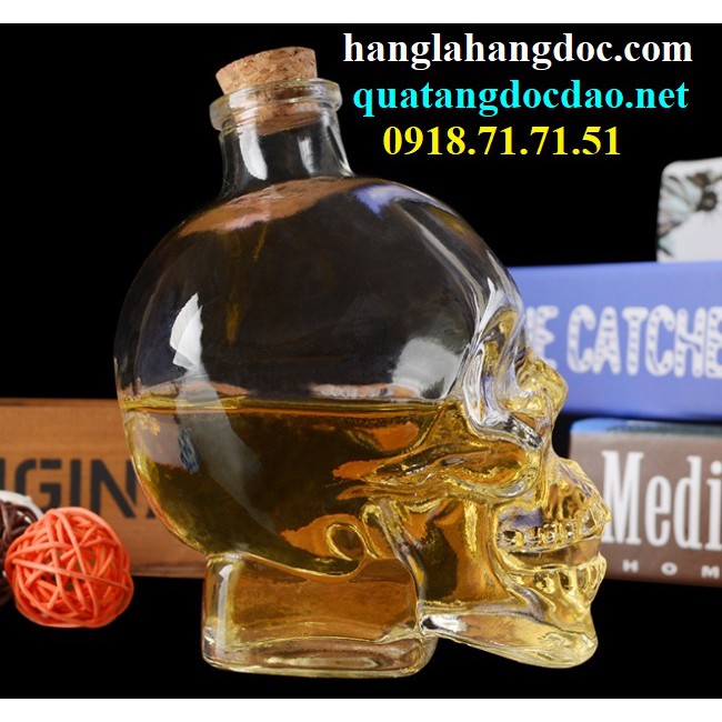 Lưu ý: Hiện có một số shop bán bình rượu đầu lâu với giá rất rẻ là mẫu làm từ thủy tinh rất mỏng, sản phẩm shop bán cam kết là thủy tinh dày (nặng 400g) cầm rất chắc tay. Vỏ thủy tinh dày nên rất bền & chắc chắn