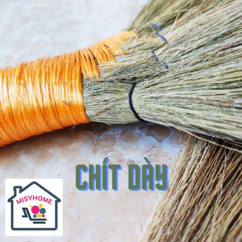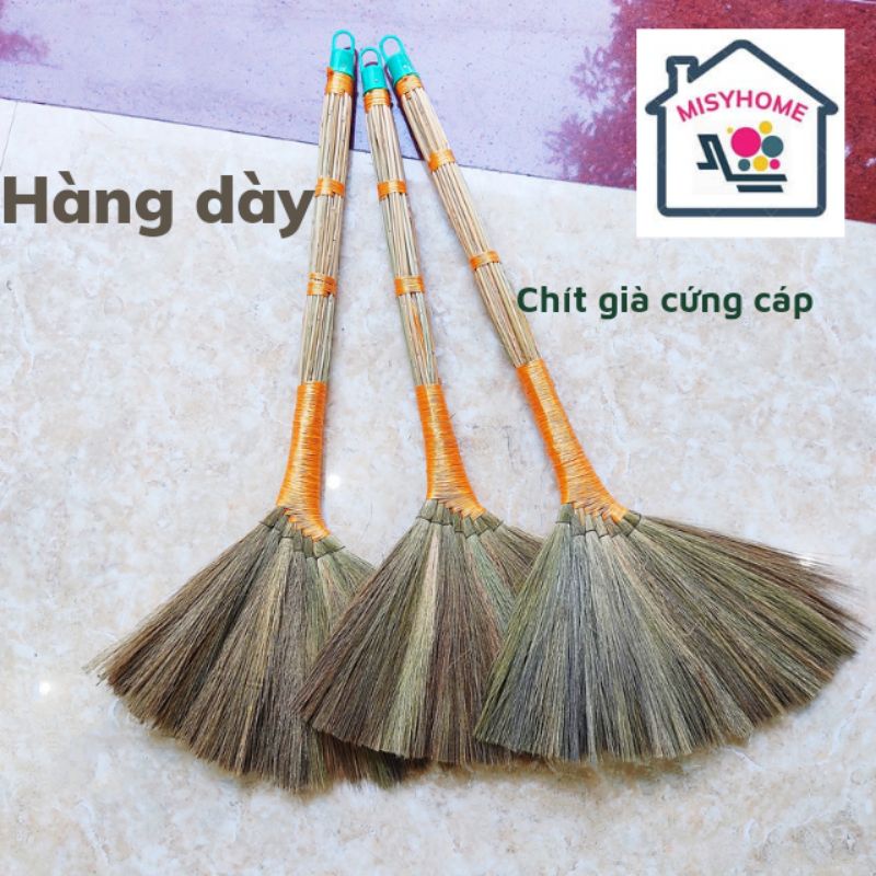 Chổi quét nhà bằng chít:Chất liệu: Cây chít khô già vừa tầm chọn lọc kĩ + dây nilon+ dây thép quấn.