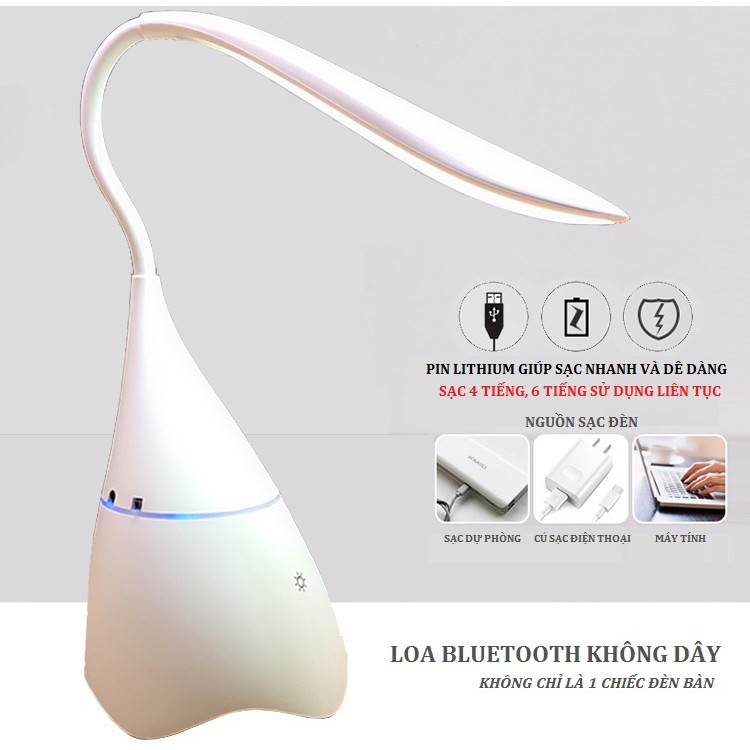 Giới thiệu [Chính Hãng] Đèn Led Để Bàn Chống Cận Thị Dùng Pin Dung Lượng Lớn Tích Hợp Loa Bluetooth Siêu Trầm Để Bàn Cho Học Sinh