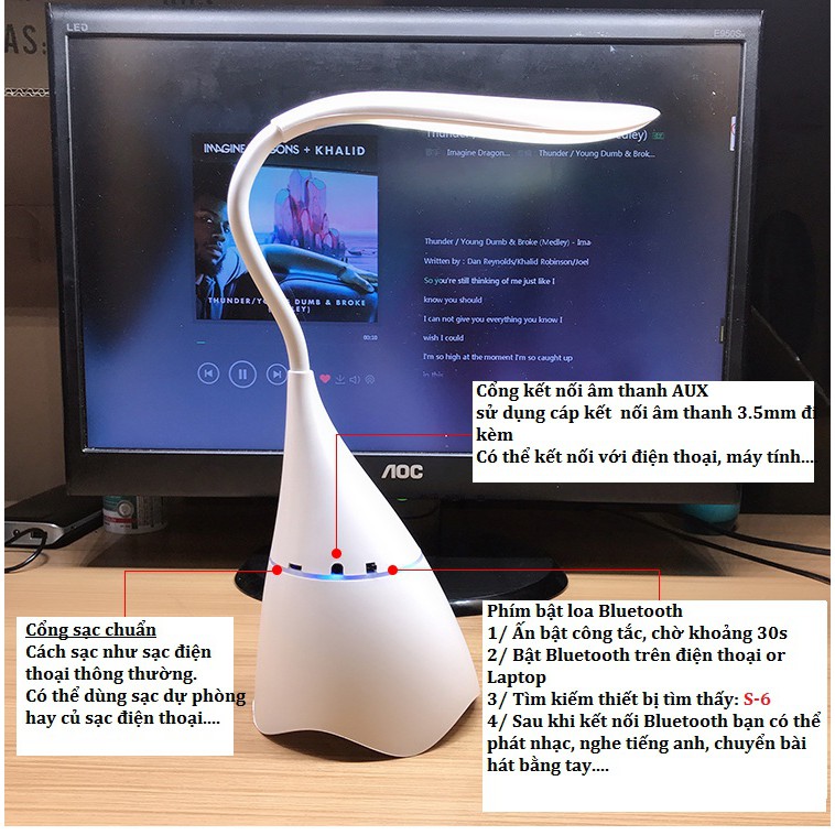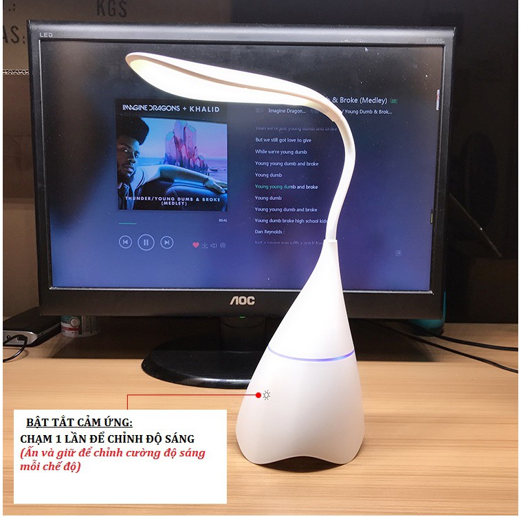 [Chính Hãng] Đèn Led Để Bàn Chống Cận Thị Dùng Pin Dung Lượng Lớn Tích Hợp Loa Bluetooth Siêu Trầm Để Bàn Cho Học Sinh S6- 3 Chế độ ánh sáng, Điều khiển cảm ứng