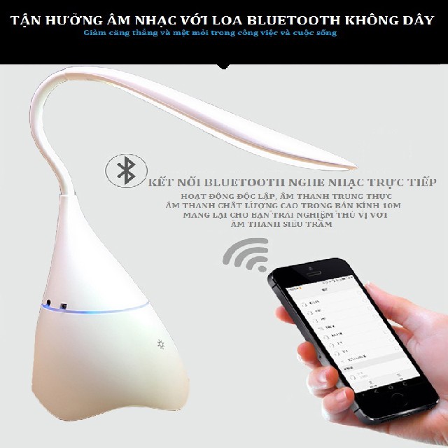 Đèn Led để bàn chống cận thị là sản phẩm tiện ích tích hợp thêm loa Bluetooth hỗ trợ cho học sinh, sinh viên có thể kết nối máy tính hoặc điện thoại để học tiếng anh. Người đi làm có thể giải trí mà không cần phải mua thêm 1 bộ loa cồng kềnh