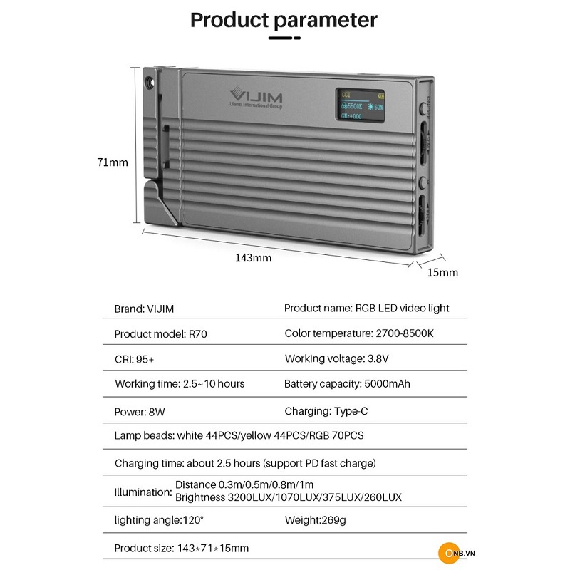 Đèn led video Ulanzi VIJIM R70 RGBĐèn led video Ulanzi VIJIM R70 RGB cung cấp cho bạn ánh sáng hai màu có thể điều chỉnh được từ 2700-8500K. Thiết lập ánh sáng phức tạp hơn với 360 màu RGB, khả năng điều chỉnh độ sáng 1-100%, có thể điều chỉnh độ bão hòa. VIJIM R70 RGB sử dụng 88 hạt đèn hai màu trắng ấm 70 hạt đèn kết xuất màu cao lumen RGB. VIJIM R70 RGB có giá đỡ đa chức năng khớp đa năng tích hợp có thể nhanh chóng điều chỉnh các góc độ khác nhau, thiết kế từ tính phía sau có thể hấp thụ hầu hết kim loại và lối chơi đa dạng.