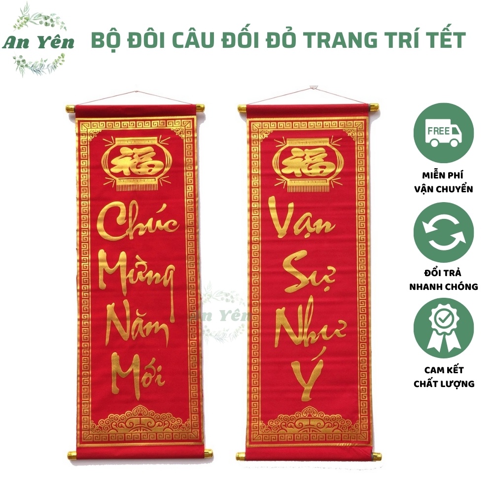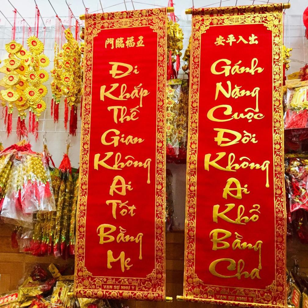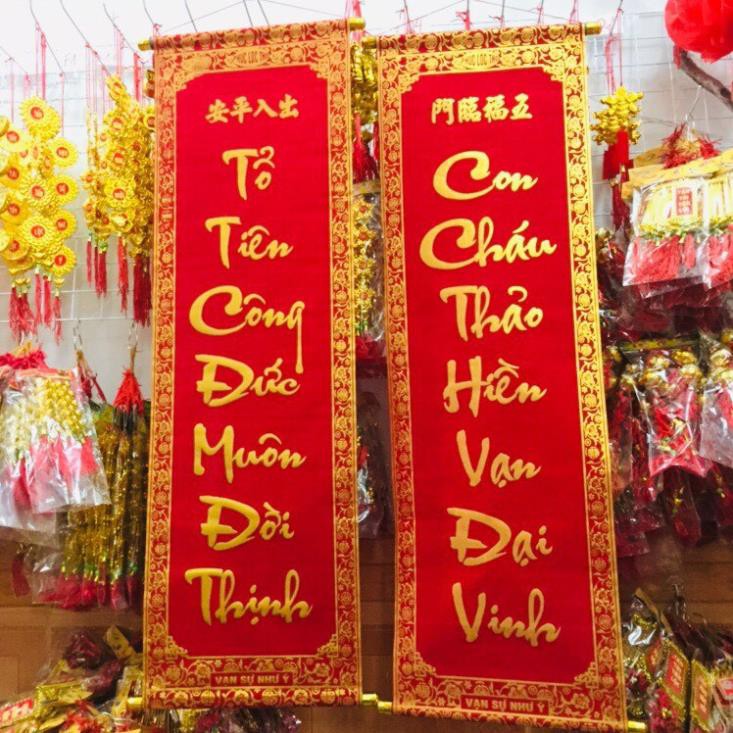 Nhà cửa & Đời sống > Trang trí nhà cửa > Khác || [HÀNG ĐẸP]1 đôi câu đối đỏ, liễng trang trí tết 35x100cm in chữ Việt Nam làm từ vải nhung đẹpCòn hàng
