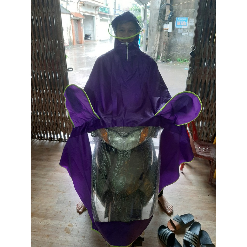 🍀Áo mưa siêu nhẹ, thiết kế kiểu dáng cánh dơi, mặt trước áo mưa có bóng kính trong suốt tiện dụng khi đi ban đêm, mũ có kính giúp bạn che chắn nước mưa.
