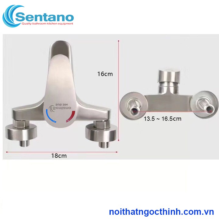 - sen tắm nóng lạnh Sentano thiết kế dễ dàng sử dụng và thao tác. Trên củ sen có phần tay gạt đóng mở. Gạt qua phải sẽ cho dòng nước lạnh chảy ra, gạt bên trái là dòng nước nóng. Gạt về giữa là trộn giữa 2 dòng nước nóng và lạnh để cho nước ấm. Khách điều chỉnh nhiệt độ ấm vừa phải bằng cách xoay nhẹ tay theo hướng phù hợp.