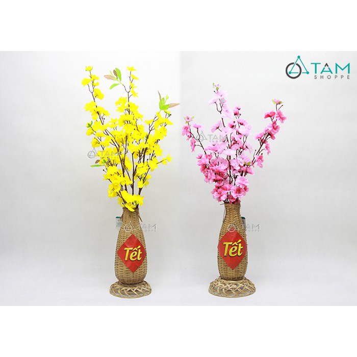 [HÀNG ĐẸP - CẮM SẴN Y HÌNH] Lọ hoa mai đào handmade bằng tre có đế T-HOA-15
