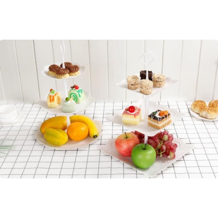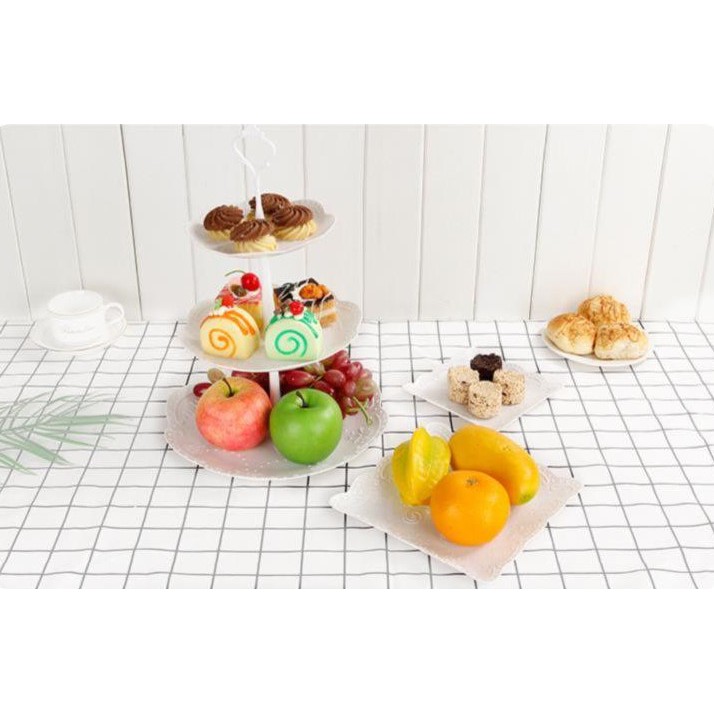 Nhà cửa & Đời sống > Bộ đồ bàn ăn > Dĩa || [HÀNG ĐẸP]Đĩa nhựa 3 tầng đựng bánh kẹo hoa quảCòn hàng