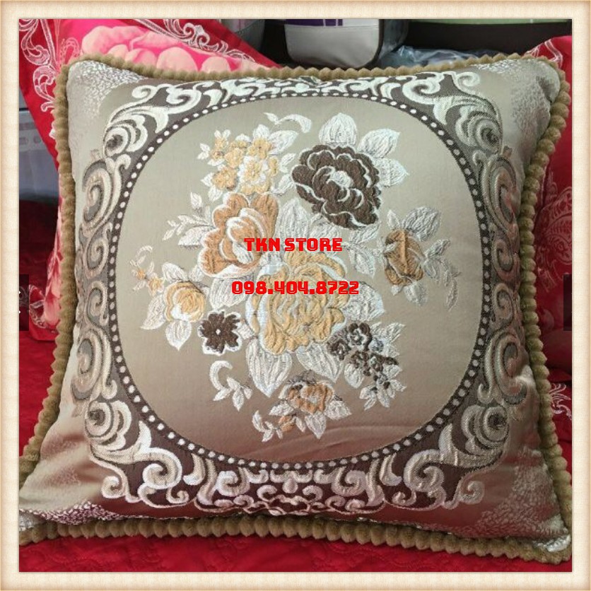 Vỏ Gối tựa Tây Âu - lụa hoa sang trọng