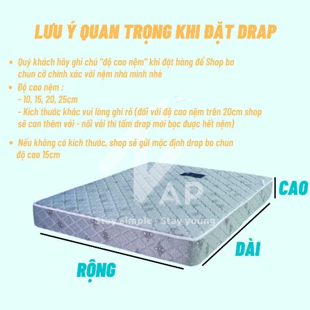 - Khách đặt hàng chọn phân loại và để lại lời nhắn mẫu mình chọn hoặc nhắn tin để shop note mẫu nhé. Lưu ý đặt đúng kích thước ga giường, nên đo lại kích thước giường, nệm trước khi đặt hàng.
