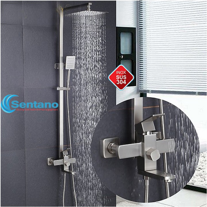 Sen cây tắm VUÔNG nóng lạnh SENTANO STN-101 inox 304 mờ Bộ đầy đủ lắp đặt sử dụng ngay