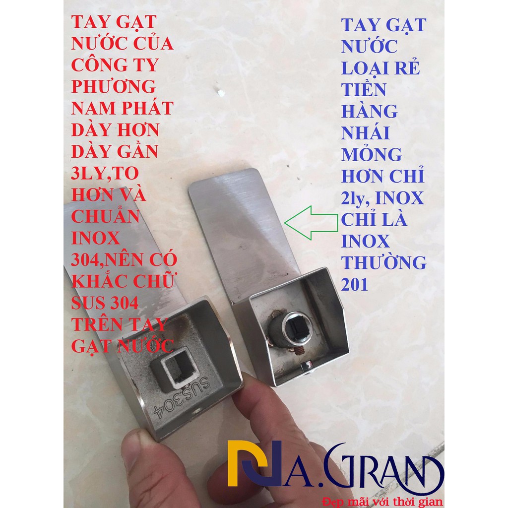 TRÊN HÌNH CTY CÓ CHỤP 2 LOẠI TAY CẦM, BÊN TRÁI LÀ CỦA CTY CÓ KHẮC CHỮ SUS 304, VÀ NHÌN DÀY HƠN, BÊN PHẢI LÀ HÀNG RẺ TIỀN,