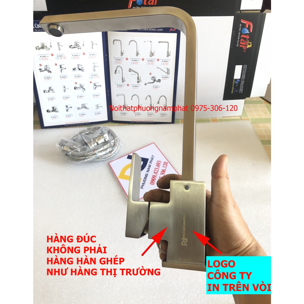 PHÂN TÍCH SỰ KHÁC BIỆT CỦA HÀNG CÔNG TY VÀ HÀNG RẺ HÀNG NHÁI HÀNG KÉM CHẤT LƯỢNG NGOÀI CHỢ. HÀNG CÔNG TY PHƯƠNG NAM PHÁT CÓ THÂN VÀ TAY GẠT NƯỚC ĐƯỢC ĐÚC NGUYÊN KHỐI (CÒN HÀNG NHÁI NHỮNG CHI TIẾT ĐẦU MỐI CHỈ HÀN GHÉP, NÊN KHI GẶP NƯỚC NÓNG SẼ BỊ NHẢ MỐI HÀN NGAY, DẪN ĐẾN GÃY TAY CẦM HAY GÃY LUÔN THÂN VÒI), ĐỘ DÀY TAY CẦM ĐỂ GẠT NƯỚC, HÀNG CTY DÀY 3ly, còn hàng nhái dày gần 2ly,
