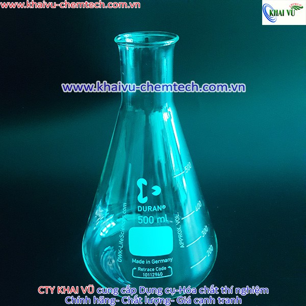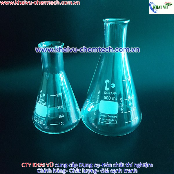 Công ty KHAI VŨ chuyên cung cấp [Hãng Duran- Đức] Bình tam giác thủy tinh 250ml 500ml chịu nhiệt