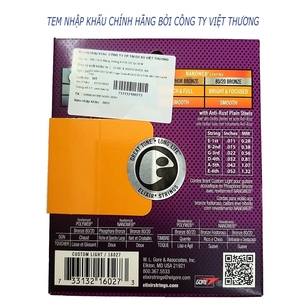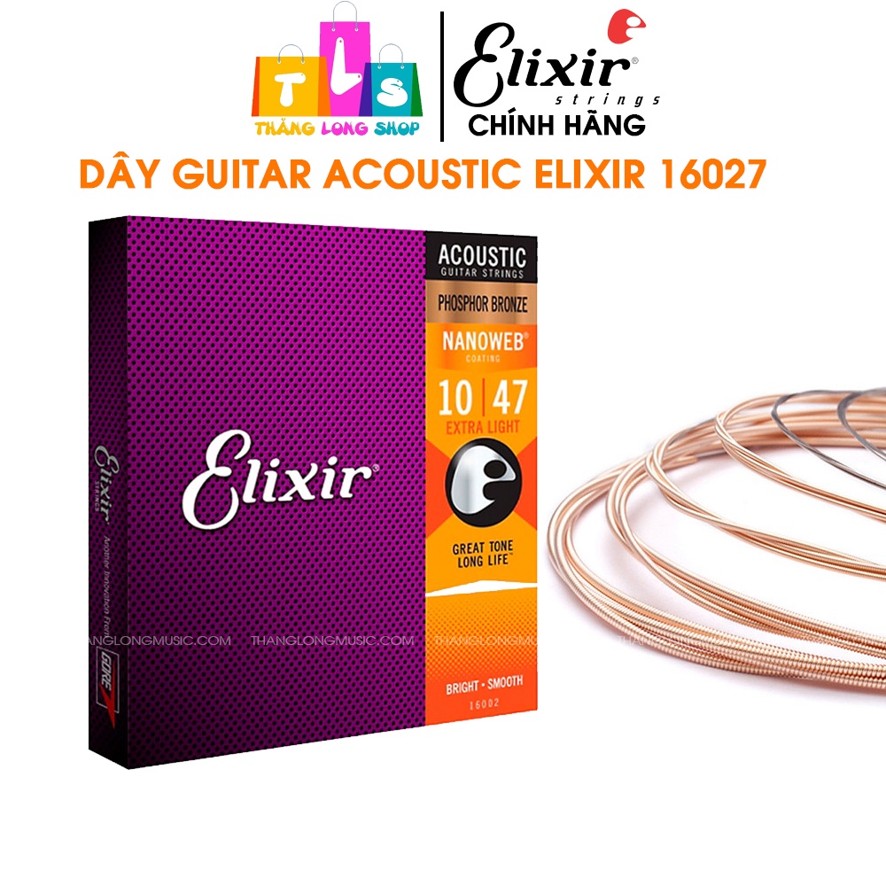 [Chính hãng] Elixir 16002 16027 16052 - Dây đàn acoustic guitar Elixir cỡ 10 11 12 Phosphor Bronze Strings