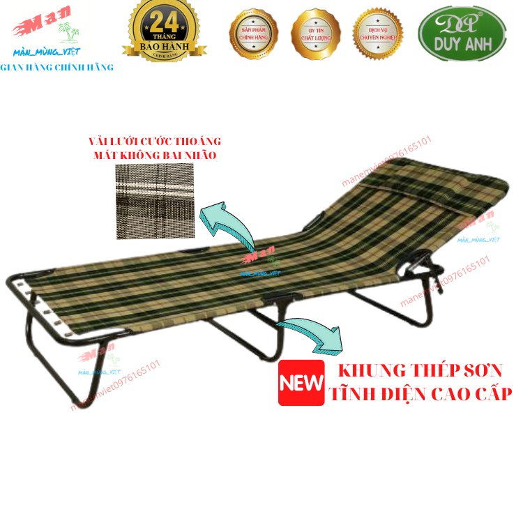 - Giường xếp gấp Duy Anh: Giường gấp thép sơn tĩnh điện.Thương hiệu DUY ANH, xuất xứ Việt Nam.