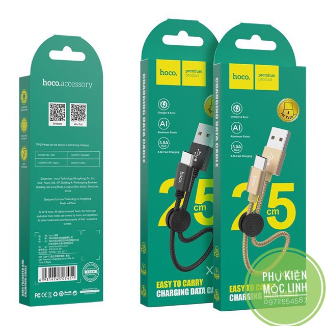 [Chính hãng Hoco] Cáp sạc Lightning / Android / Type C dài 25cm Hoco X35 Dây ngắn Iphone dùng cho sạc dự phòng