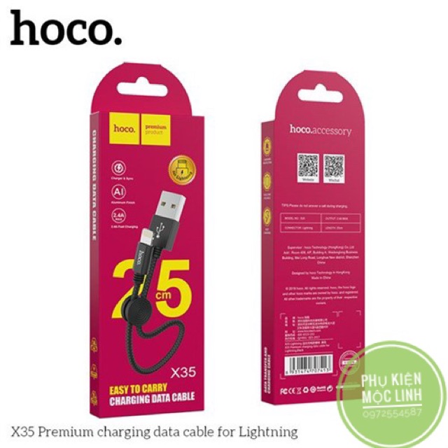 Giới thiệu [Chính hãng Hoco] Cáp sạc Lightning / Android / Type C dài 25cm Hoco X35 Dây ngắn Iphone dùng cho sạc dự phòng